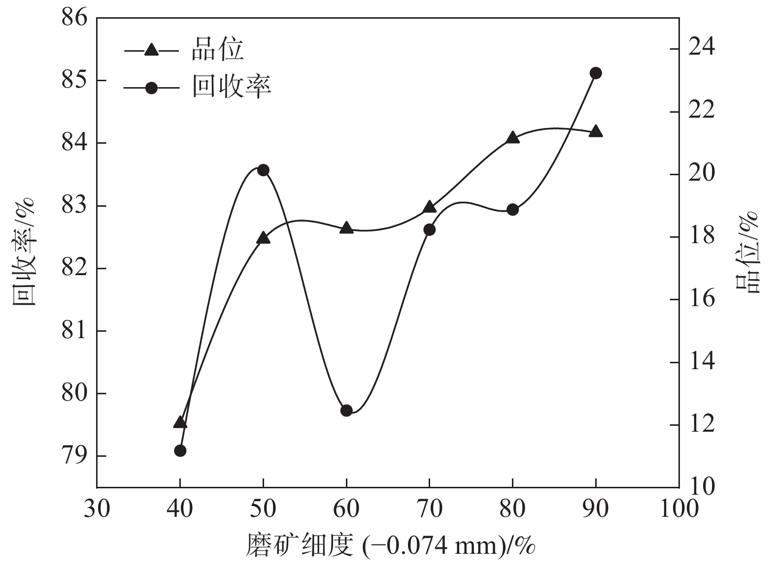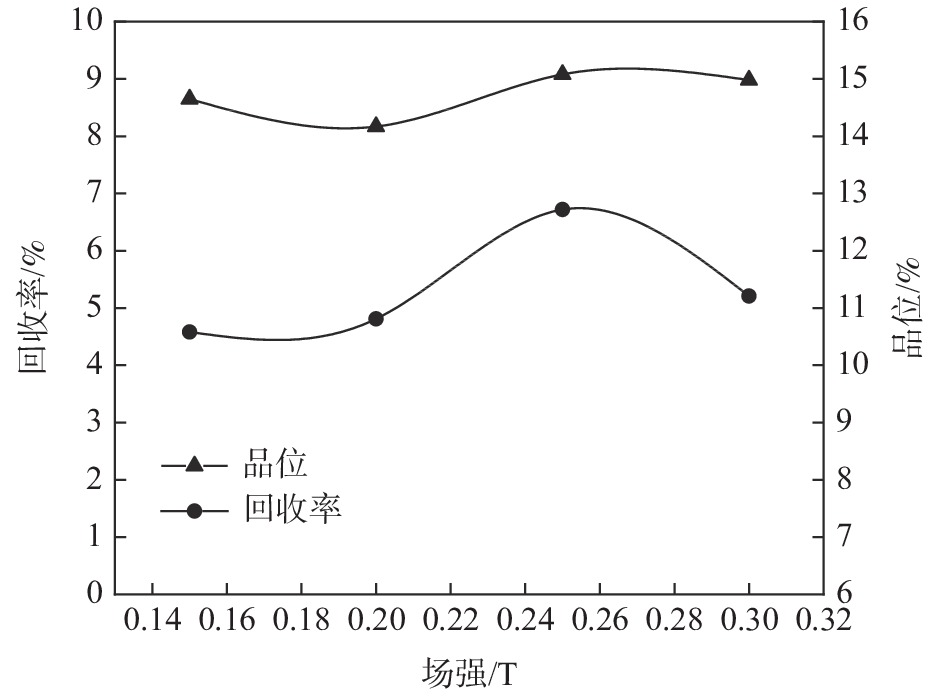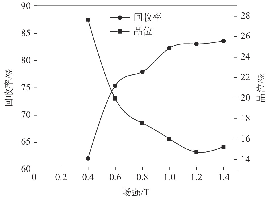 A low-grade ilmenite ore in Yunnan province contains only 5.67% titanium (TiO2), and most of Ti exists in ilmenite alone, occupying 83.56% of the total TiO2 in the ore. The rest of 16.44% Ti exists in magnetite and pyroxene in a homogeneous form, and the vein minerals mainly include quartz and chlorite, etc. The beneficiation test for the ilmenite was carried out to seek a reasonable process flow and provide a theoretical basis for the development of this resource, which can make a sufficient use of titanium ore resources. Firstly, the chemical components and mineral compositions of the ore were identified. Then, the process parameters such as grinding fineness, weak magnetic field strength and strong magnetic field strength were studied. On this basis, the combined process of “grinding-weak magnetic separation-strong magnetic separation-strong magnetic separation-graded shaking table re-election-medium ore regrinding and re-election” was proposed. The titanium concentrate containing 45.06% TiO2 can be finally obtained, with the recovery rate (for the original ore) of 53.73%. The proposed process realizes effective recovery of the target minerals with a well index.