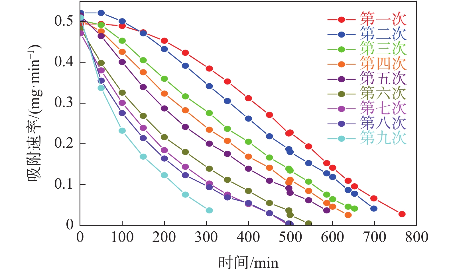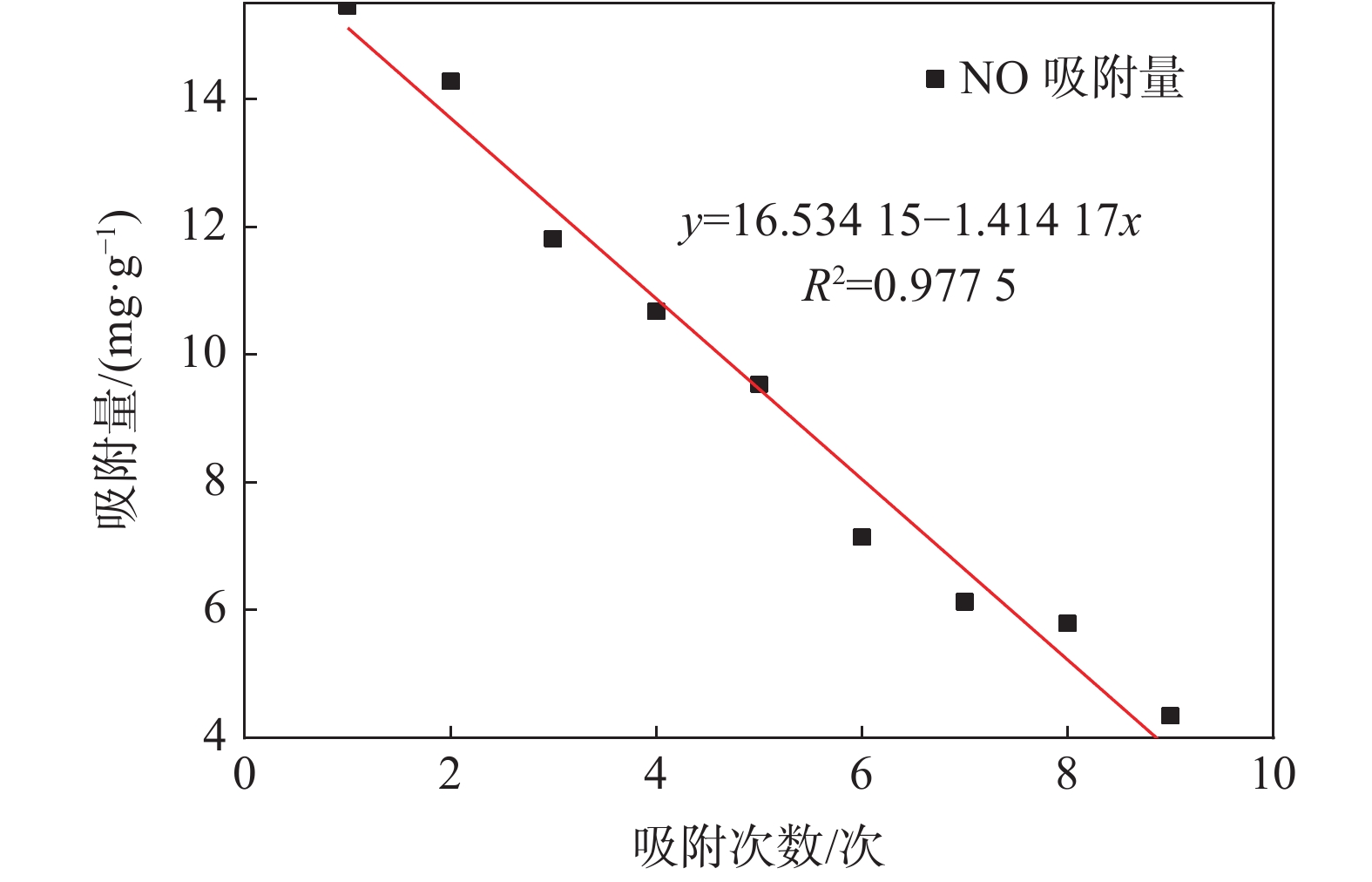 In order to reduce NOx emission and alleviate the environmental pollution from steel industry, a modified activated carbon adsorbent was prepared by impregnation with potassium carbonate (K2CO3). The effect of SO2 concentration on the adsorption of NO in sintering flue gas by the modified activated carbon and the cyclic adsorption and desorption performance of the modified activated carbon were investigated. The results show that SO2 can improve the initial adsorption rate of NO but significantly reduce the saturated adsorption capacity of the modified activated carbon. SO2 occupies the active sites of the carbon by chemical adsorption, and the sulfites and sulfates formed are difficult to be desorbed by heating, resulting in difficulty of recovering the initial adsorption capacity of the modified activated carbon. Under the influence of SO2, the attenuation rate of the adsorption capacity of the modified activated carbon is about 1.414 17 mg/g. According to the attenuation rate and the moving bed adsorption device, appropriate input parameters of the fresh activated carbon can be adopted to guide the application of the modified activated carbon for removal of NO in the sintering flue gas, which can effectively reduce the environmental pollution and realize effficient utilization of resources.