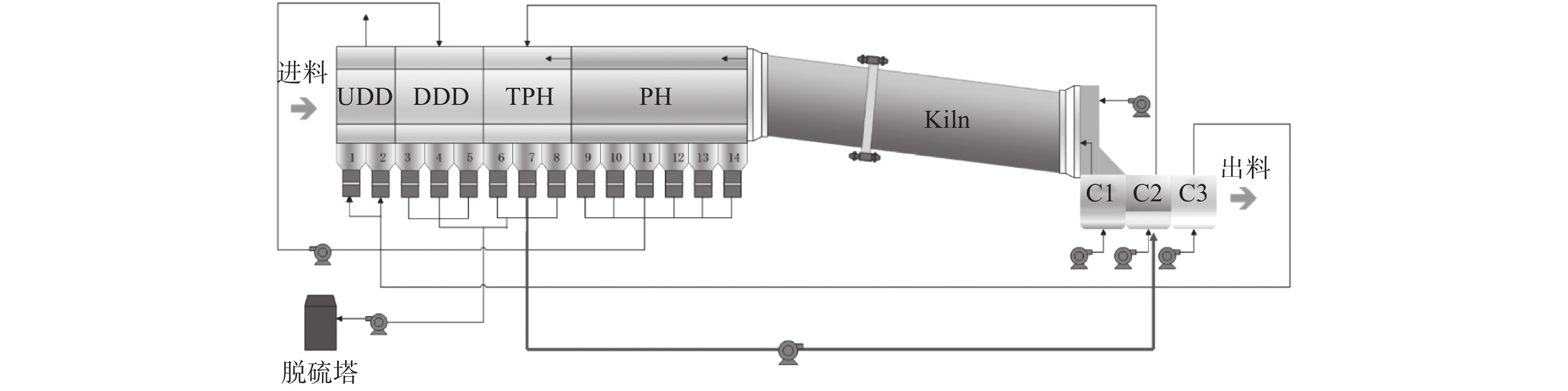 Recirculating process of pellet exhaust gas from grate-kiln and numerical simulation