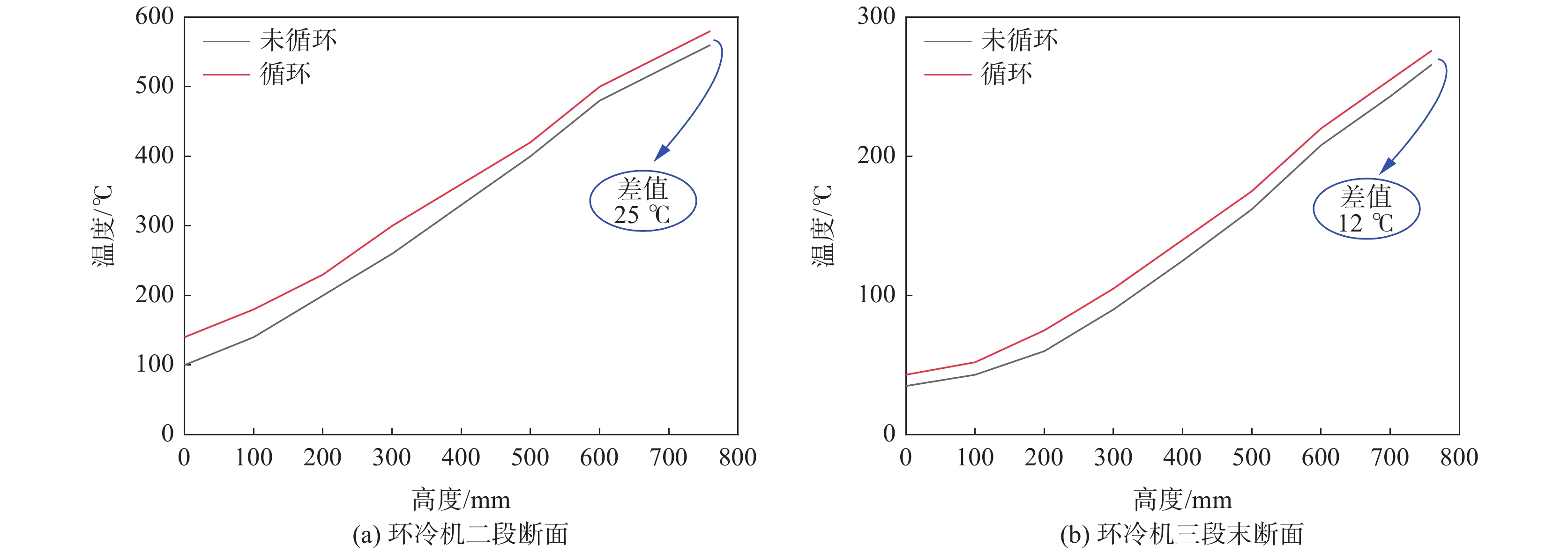 Aiming at the problems of large exhaust gas discharge and low waste heat utilization rate of the grate-kiln ring cooler, a waste gas cycle technology that recycles the hot waste gas from the transitional preheating section to the second section of the circular cooling machine, was proposed. Then the pellet cooling process after using the waste gas cycle was simulated and studied. Based on the theory of computational fluid dynamics and combined with the local non-thermodynamic equilibrium theory and the magnetite oxidation reaction model, a numerical simulation model was established by CFD software to reveal the influence of exhaust gas cycle on pellet cooling. The results show that the exhaust gas temperature of the second cooling stage increases from 511 ℃ to 523 ℃ after adapting the flue gas circulation system, improving the heat utilization efficiency. The exhaust gas emission can be reduced by 11.5%, and the energy occupying 3.45% of the total heat expenditure for pellet production can be recovered. This study provides a new direction for further energy saving and emission reduction in pellet production, which is of great significance for pellet cleaner production.