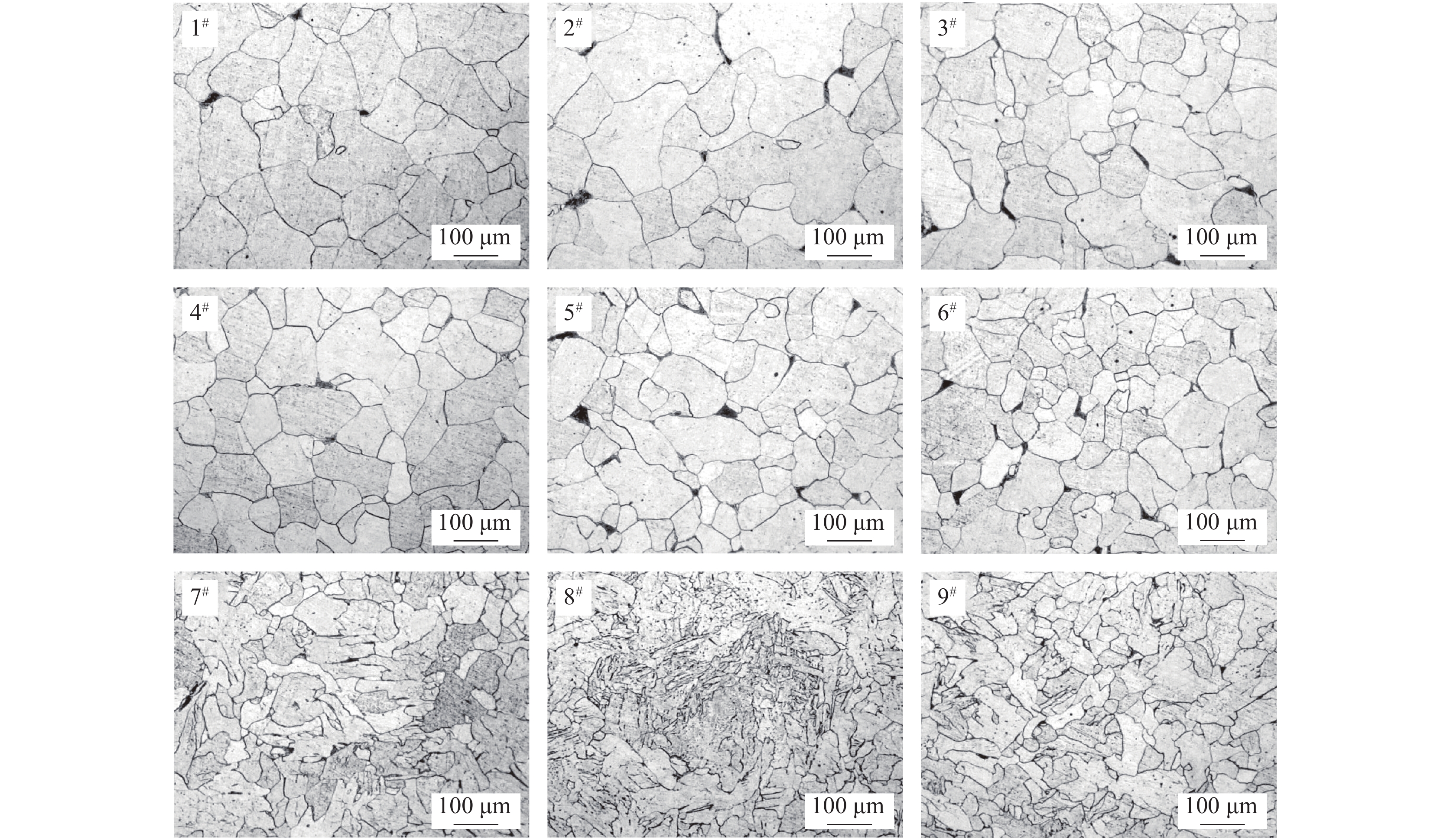 In this paper, the effect of titanium content on the microstructure and properties of non oriented electrical steel with different titanium content was studied by means of annealing furnace, transmission electron microscope, metallographic observation and magnetic property test. The results showed that the grain size of electrical steel decreased with the increase of titanium content. When the content of titanium was less than 0.015%, the grain was equiaxed with a higher uniformity. The titanium precipitated in the form of carbonitride and was pinned at the grain boundary of the structure. With the increase of Ti content to more than 0.015%, the grains in the microstructure were obviously deformed, and Ti precipitated out of the grain boundary and in the grain boundary by Fe-Ti phosphide. The magnetic induction and iron loss of electrical steel could be slightly improved by adding a small amount of titanium ( ≤ 0.015%). The iron loss W15 / 50 was about 4.6~5.2 W/kg, and the magnetic induction B50 was about 1.74~1.76 T. However, excessive addition of titanium should be strictly avoided.