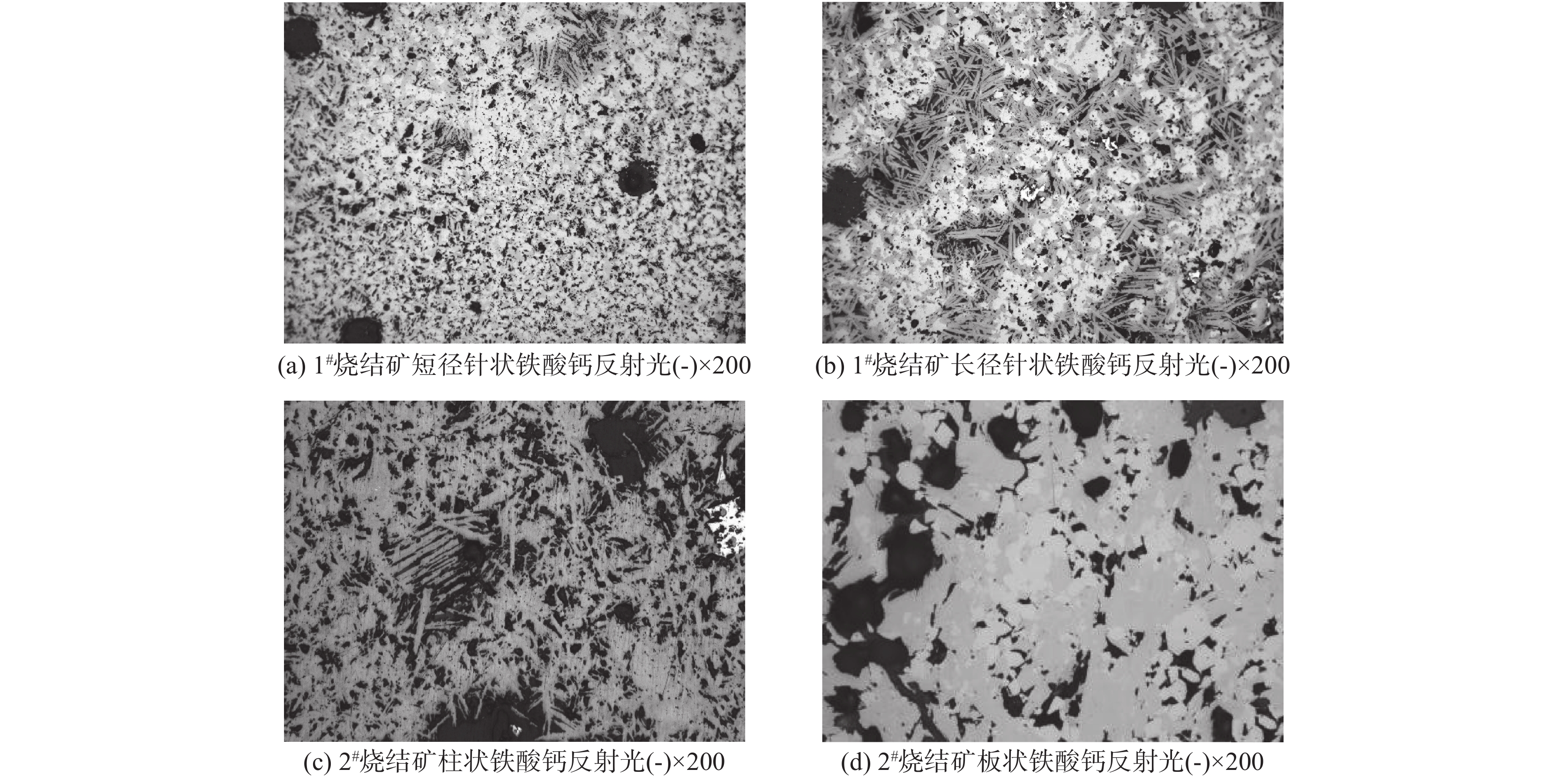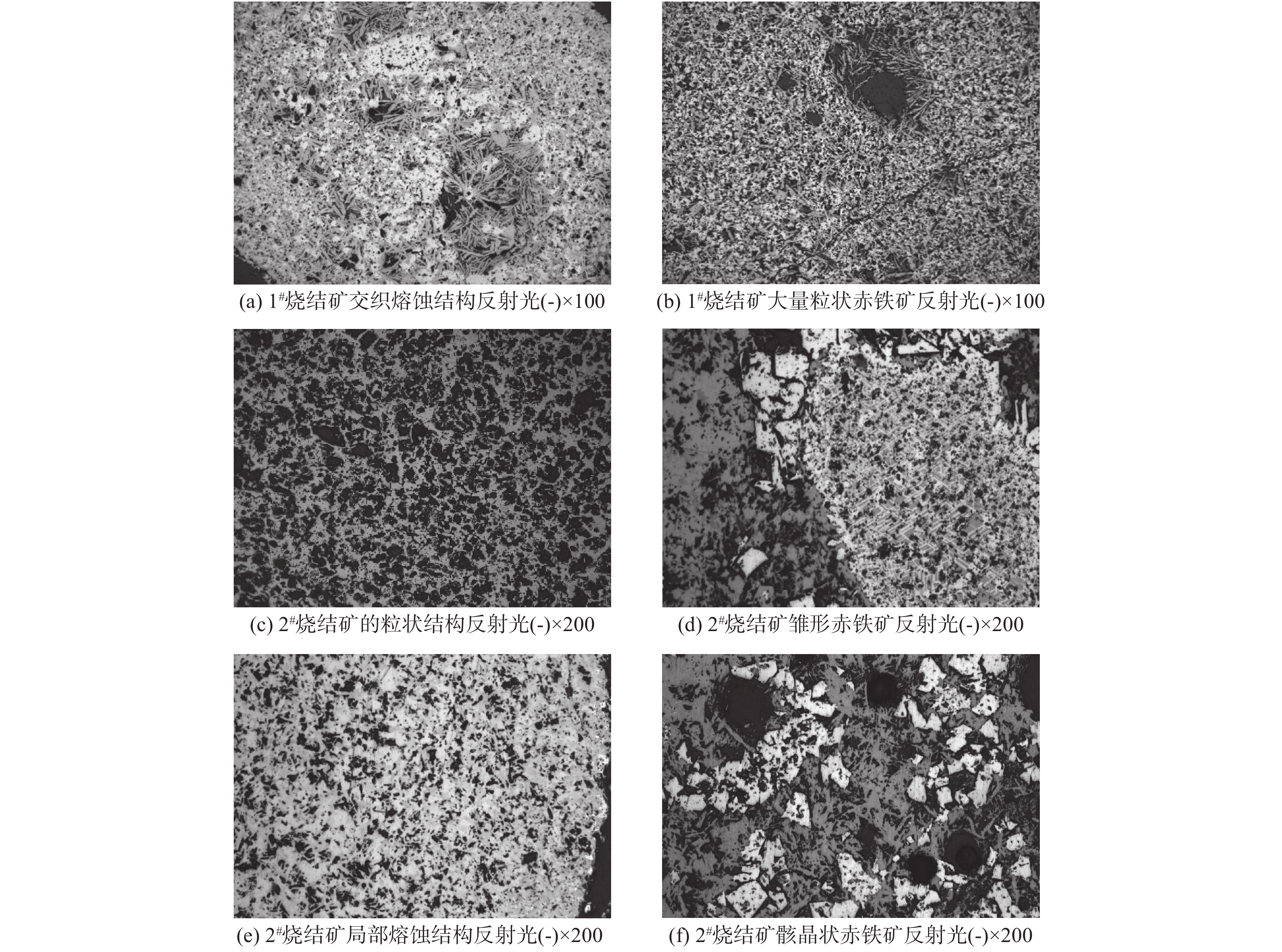 The content, morphology and grain size of calcium ferrite, and the main binding mineral as well in sinter, play a key role in the quality of sinter. The mineral phase structure and calcium ferrite characteristics of high basicity sinter with different quality situation were studied systematically and quantitatively by using polarized light microscope. The results show that hematite and magnetite are the main metal phases of No.1 and No.2 sinter. The bonding phases are calcium ferrite, dicalcium silicate and vitreous. The difference is that the No.1sinter is mainly composed of interlacing corrosion structure formed by acicular calcium ferrite and magnetite. The No.2 sinter is dominated by granular structure formed by the mutual combination of allochthonous magnetite and binding mineral. The volume percentage of calcium ferrite in No.1 sinter is about 50%, and its shape is mostly needle shaped. The size range of diameter is 0.05~0.10mm. The corresponding sinter reducibility (75%), low temperature reduction degradation rate (76.5%) and drum strength (81.6%) show high values. The volume fraction of calcium ferrite in the No.2 sinter is about 45%, and its shape is mostly plate and column. The size range of its diameter is 0.05~0.10mm. The corresponding sinter reducibility (59.35%) is weak, the low temperature reduction degradation rate (25.21%) is low, and the drum strength (63.37%) is small.