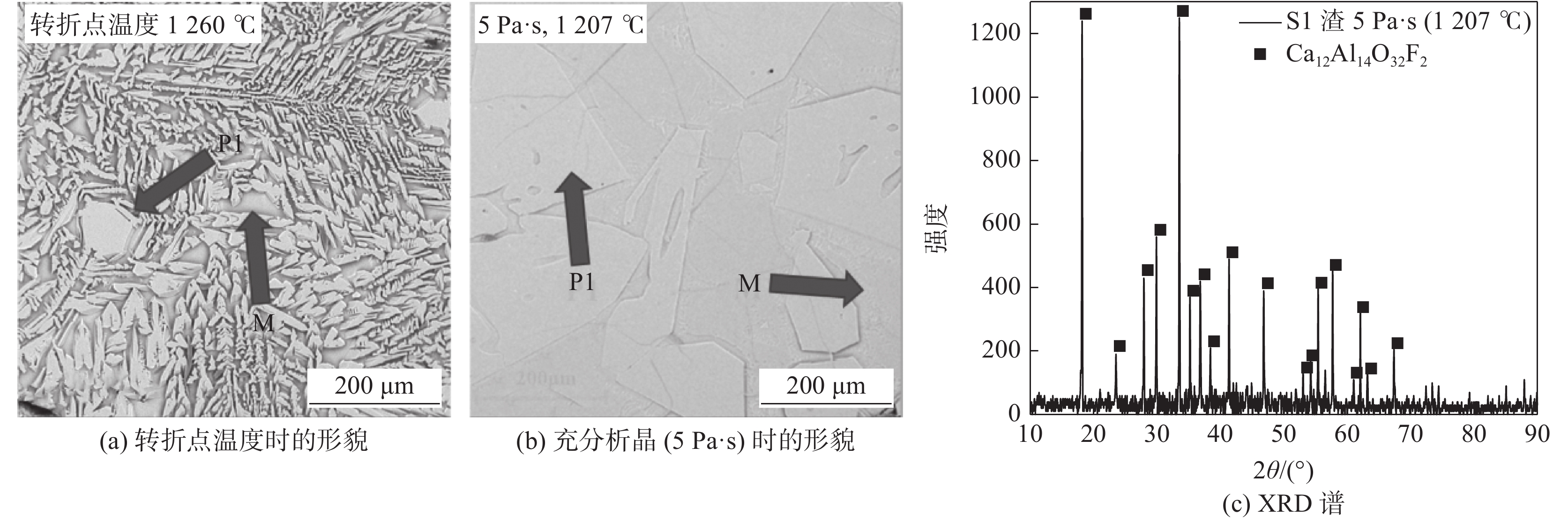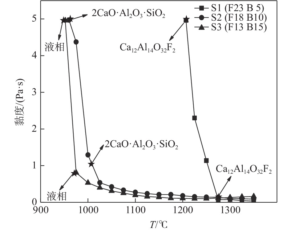 In order to address the problems of serious slag strips and breakout alarms in the process of high-aluminum steel continuous casting using calcium-aluminum-based mold flux, the comprehensive effect of B2O3 and CaF2 on the melting temperature, viscosity and crystalline properties were investigated. The results showed that as the mass fraction of CaF2 replaced by B2O3 increased, the melting temperature and breaking temperature of the mold flux decreased, and the viscosity showed an increasing trend. Moreover, the mold flux had stronger crystallization ability with high content of CaF2, leading to the precipitation of Ca12Al14O32F2 at a high temperature. As the mass fraction of CaF2 replaced by B2O3 increases, the crystallization ability had been obviously inhibited, and the crystalline phases changes as follows: Ca12Al14O32F2 → 2CaO·Al2O3·SiO2 → a single liquid phase.When B2O3 replaces CaF2 with a mass fraction of 10%, the crystallization performance of the mold flux was effectively suppressed, which could effectively reduce the sticking breakout alarm and meet the casting requirements of high-aluminum steel.