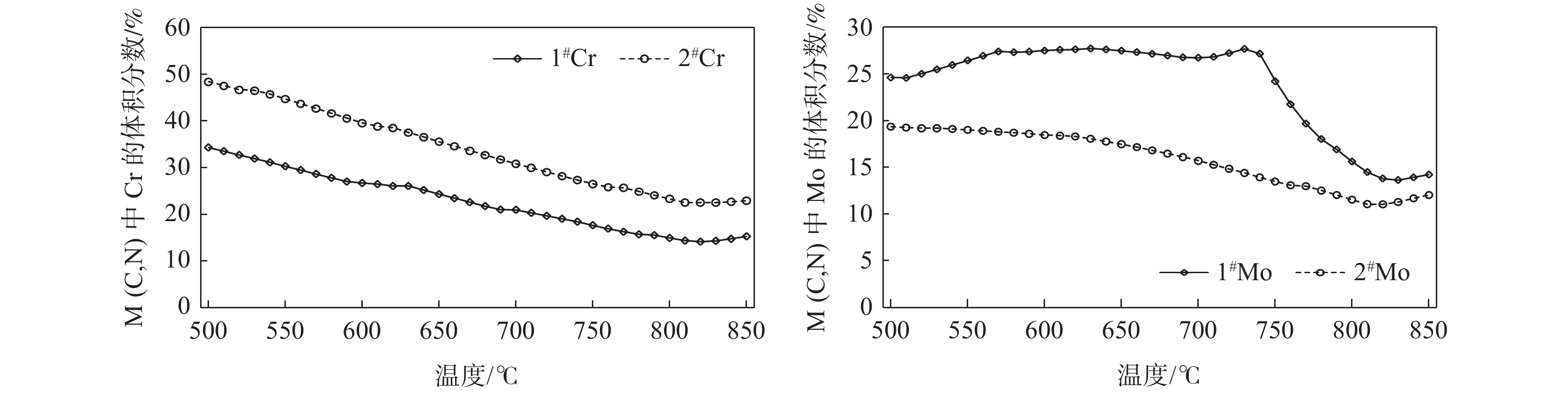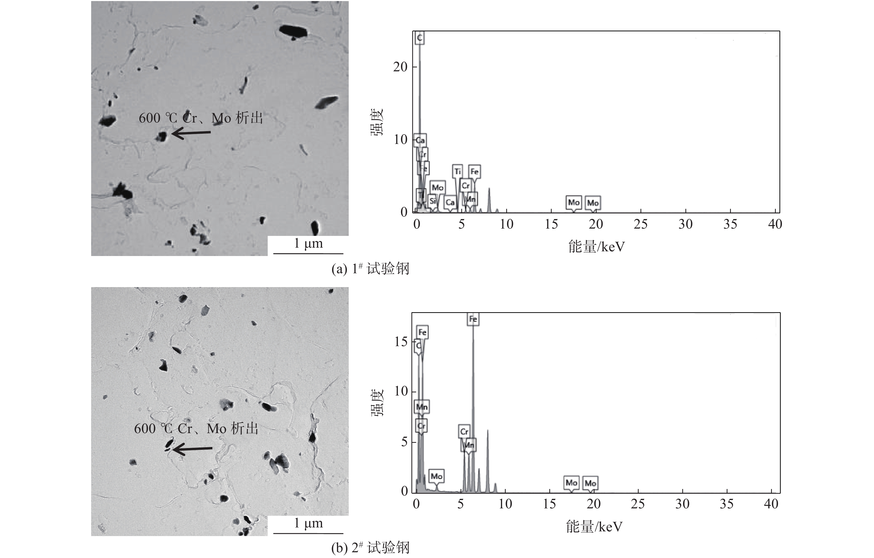 The anti-seismic and fire-resistant 460 MPa construction steels with different Cr content were designed to analyze the microstructure, performance at room temperature and elevated temperature. Both 0.4%Cr and 0.8%Cr steels meet the standards of anti-seismic and fire-resistant steel, that is, yield ratio is less than 0.83 and yield strength is more than 307 MPa after 3 hours soaking at 600 ℃. The precipitations were simulated and analyzed by simulation software and using OM and TEM. It is concluded that increasing Cr content has an effect on improving of yield stress at room temperature and the reduction of yield strength ratio. With the increase of Cr content, high elevated temperature instability precipitations and the content of Mo in the precipitations can be decreased and Mo in the matrix can be raised. It has a positive effect on enhanced high elevated temperature solution strengthening and fire-resistance of construction steel because of Mo solid solutions.