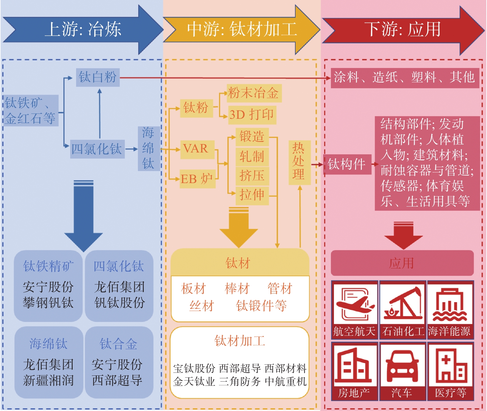 This paper systematically summarizes the development history and current situation of China’s titanium industry from the aspects of titanium resource distribution, production and processing, application fields, and distribution pattern of related enterprises. The paper analyzes the current problems of overcapacity and imbalance between supply and demand, the urgent need to optimize industrial structure, the insufficient linkage between upper design and lower industry, the urgent need for technological innovation and industrial upgrading, the dual challenges of resource and environmental constraints, and the dilemma of intensifying competition in domestic and foreign markets. The suggestions and prospects of optimizing cost structure and expanding application field, establishing a new collaborative mechanism of high-quality utilization of titanium materials and a cross-regional innovation platform of high energy level, guaranteeing incentive system to strengthen cooperation mechanism and play the role of strategic hinterland are put forward for the development of titanium and titanium alloy industry in Sichuan and Chongqing region.