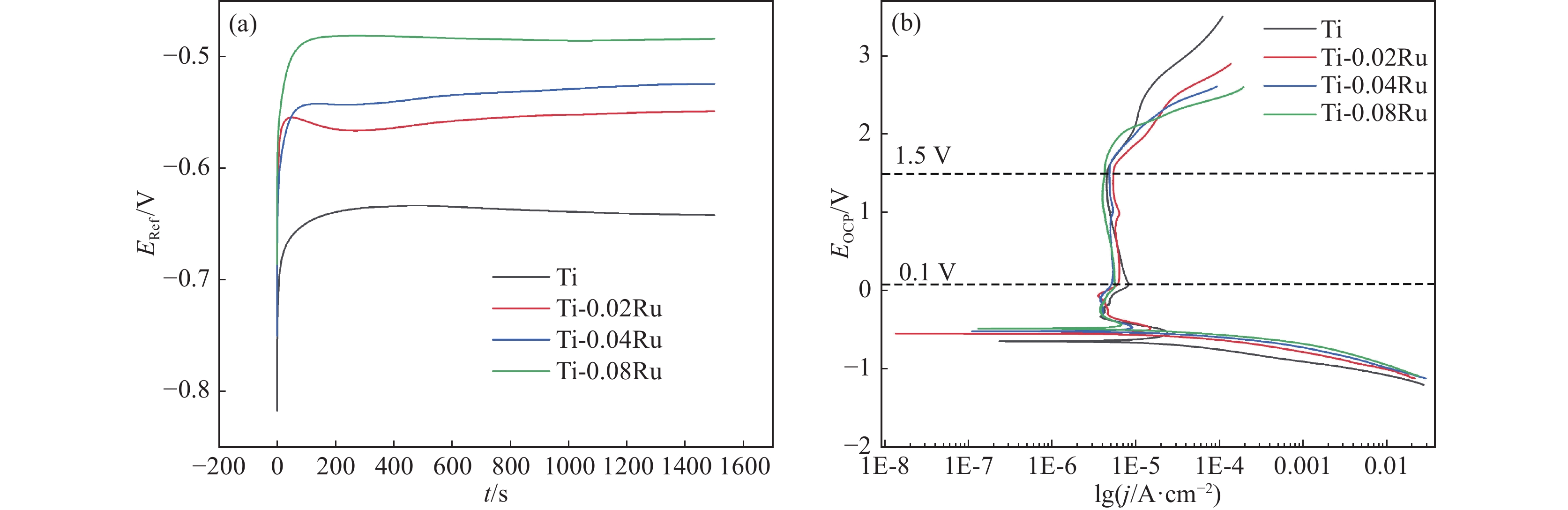The investigation of Ru alloying on the electrochemical behaviour of pure Ti