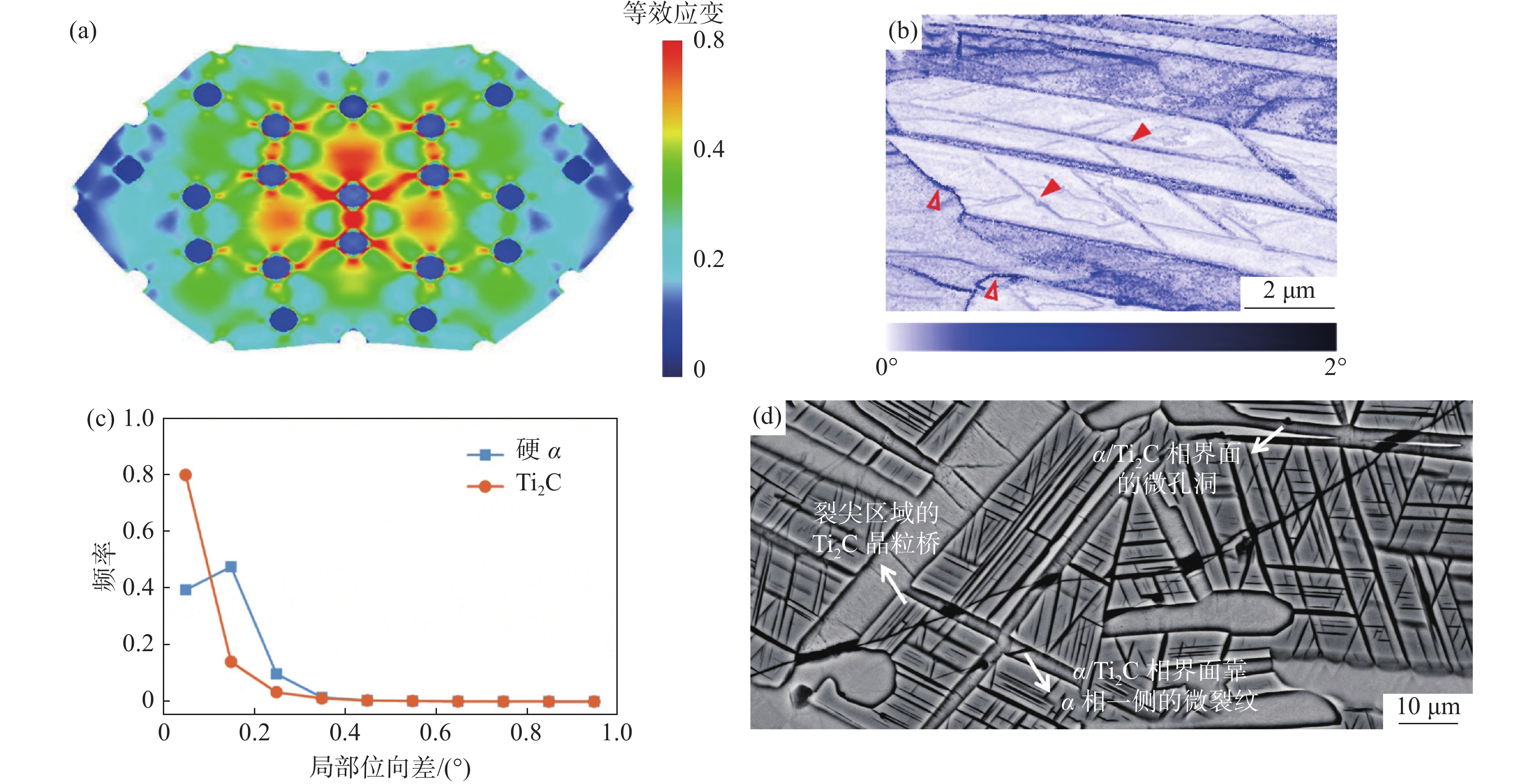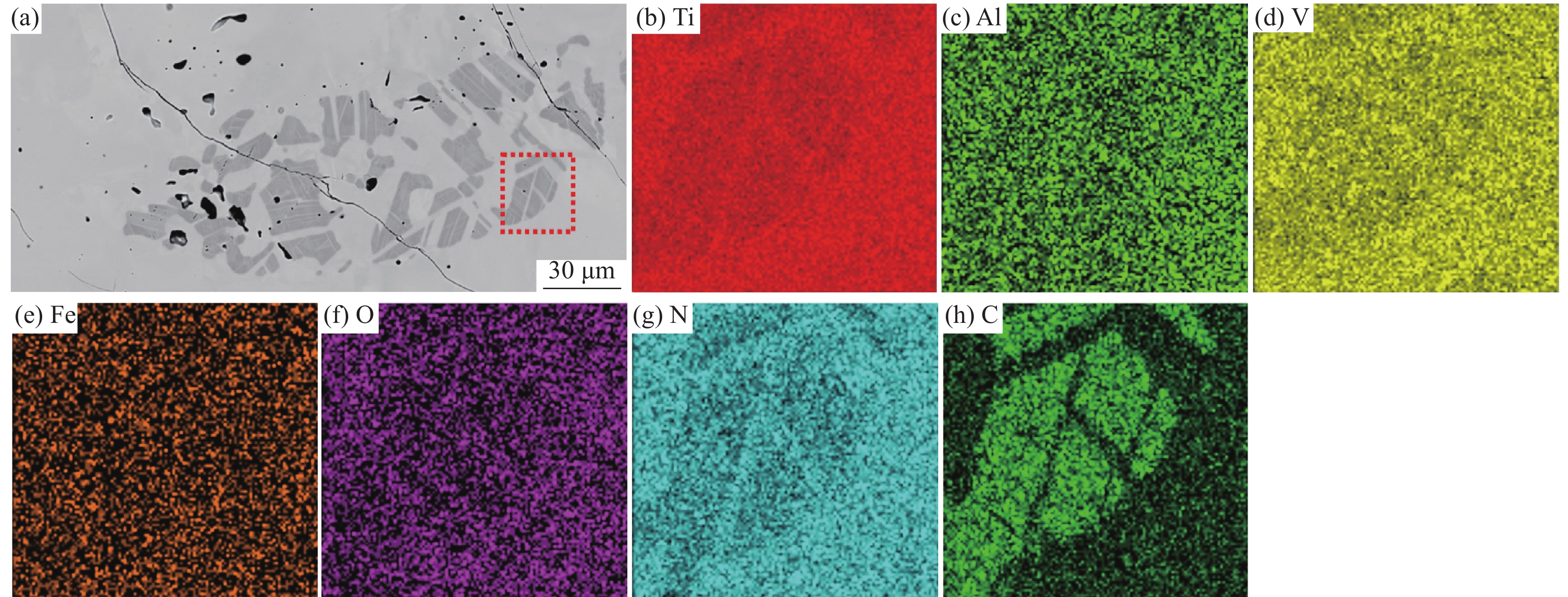 Since the contacting ultrasonic detection results indicated some defects existed in a bar of Ti-6Al-4V alloy, researching work had been carried out using optical microscope, scanning electron microscope metallographic analysis, microhardness, energy spectrum, electron probe, backscatter electron diffraction and other characterization methods. And uncommon carbon enriched defect had been figured out. Flecks surrounded with α stable area were observed in the microstructure. Then, it was figured out that flecks were Ti2C with ordered FCC crystal and the α stable area was hard α phase based on the chemical composition and crystallology analysis. According to the distribution characteristics of chemical elements, the defect source was presumed to be raw materials contaminated by elements rich in carbon and nitrogen. Micro cracks initiated at Ti2C/α boundaries and grew into the α side in the hard α and Ti2C regions during the forging. Micro cracks would break through the Ti2C crystal bridges and merged into ultrasonically detectable macro crack defects at last.