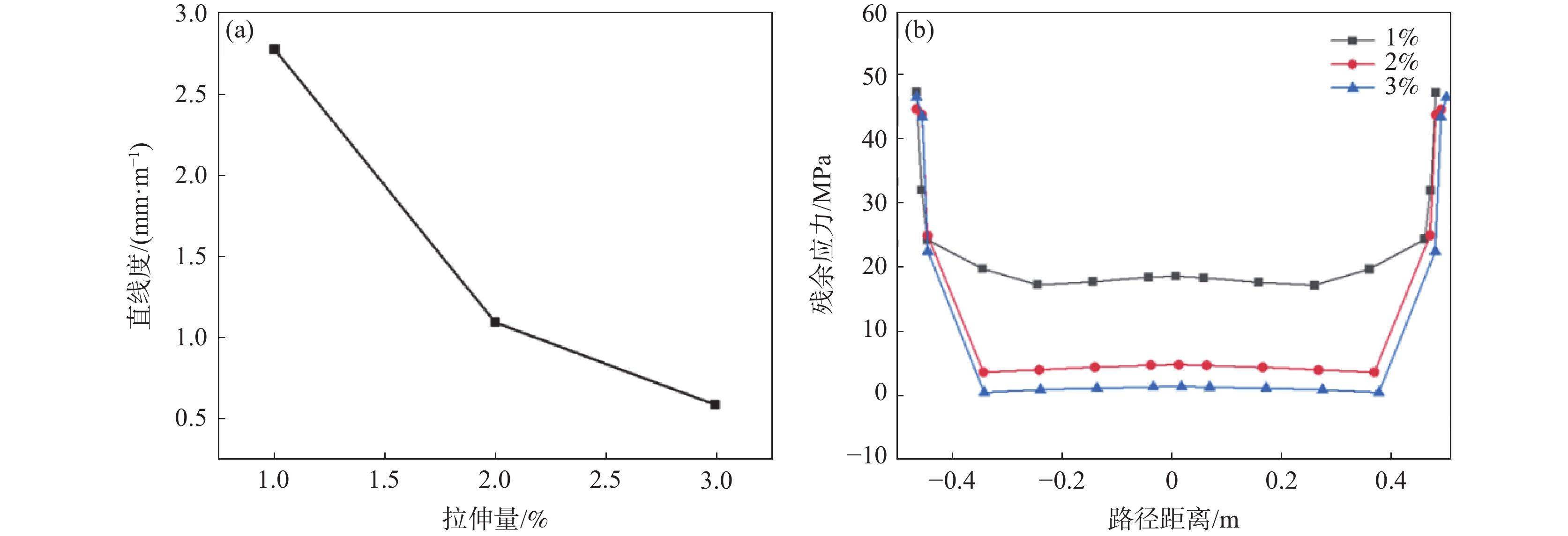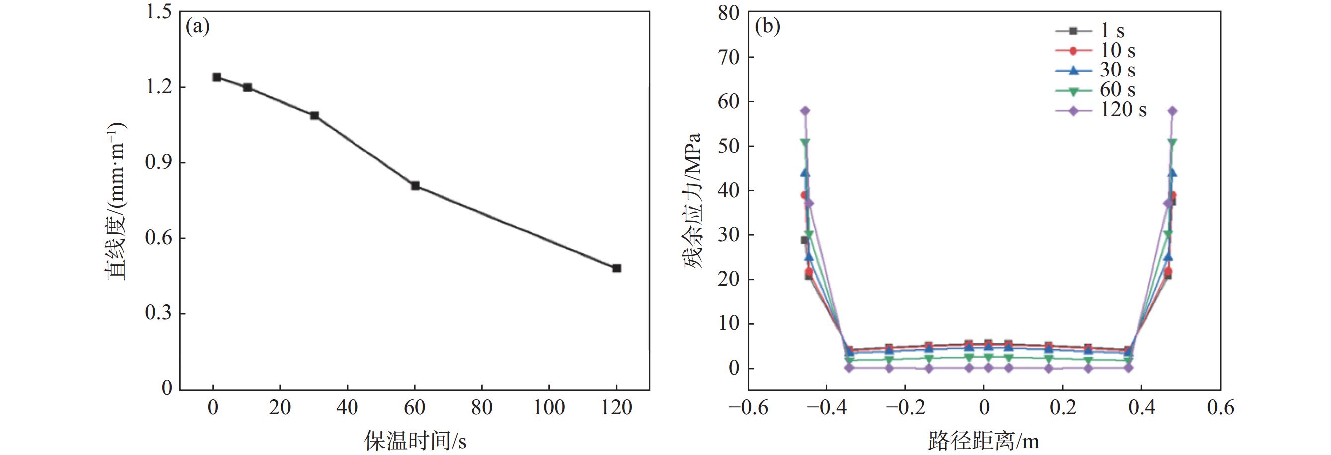 Shape bending often occurs during the production process of titanium alloy bars, and thermal tension straightening is an effective straightening method. In this study, the thermal tension straightening model of TC4 bar was established by using the finite element simulation software ABAQUS. The influence of straightening process parameters such as straightening temperature, holding time and tensile elongation on the straightness and residual stress of TC4 bar was studied systematically. And the optimized straightening process parameters were obtained combined with the physical experiment of straightening. The results show that the higher the straightening temperature, the longer the holding time and the greater the thermal tensile amount, the smaller the straightness and the smaller the residual stress of TC4 bar. In view of the actual production conditions, the optimal process parameters for the straightening of TC4 titanium alloy bar are determined with a straightening temperature of 750 ℃, a thermal tensile amount of 2% and a holding time of 10 s.