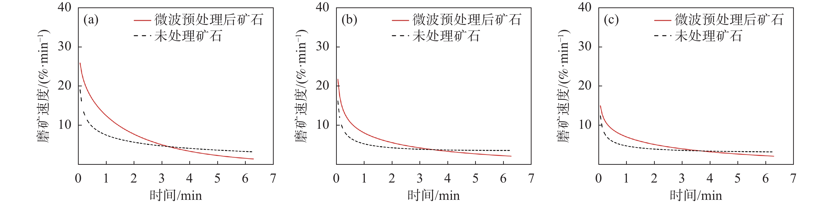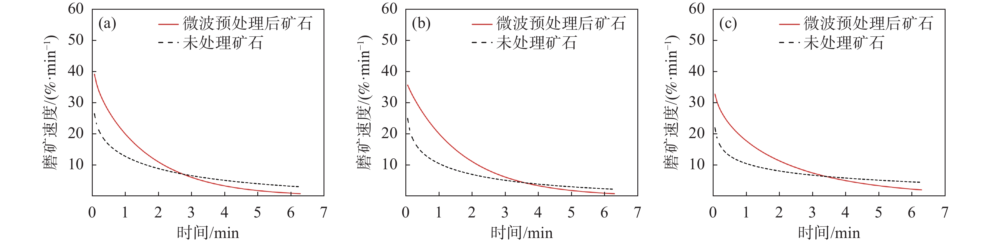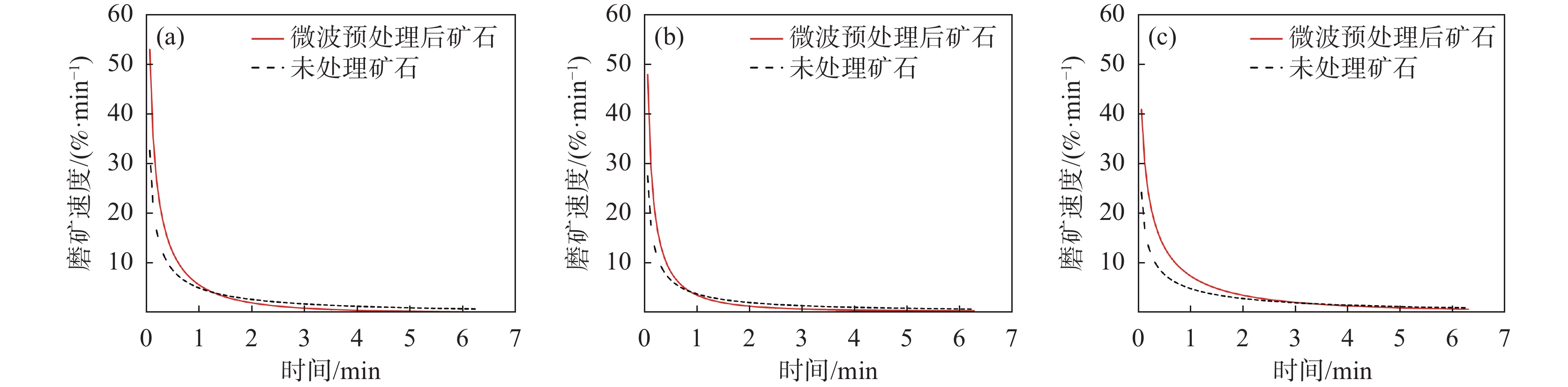 Batch grinding experiments of vanadium titanium-magnetite (VTM) with different grinding times before and after microwave treatment were carried out. The m-order grinding kinetics model of untreated and microwave treated VTM was established, and the effects of particle size and grinding time on the grinding speed were analyzed. In the initial stage of grinding, the number of microcracks was the main factor affecting the grinding speed. While in the middle and later stages of grinding, the grinding probability became the main factor affecting the grinding speed. The grinding speed of the coarse-grained (?3.350~+1.700 mm) ore after microwave pretreatment was much higher than that of the untreated ore, while the grinding speed of fine-grained (?0.057~+0.045 mm) ore changed slightly. Microwave assisted grinding of VTM is beneficial to improving the particle size composition of the grinding products, thus improving the separation efficiency and the concentrate quality.