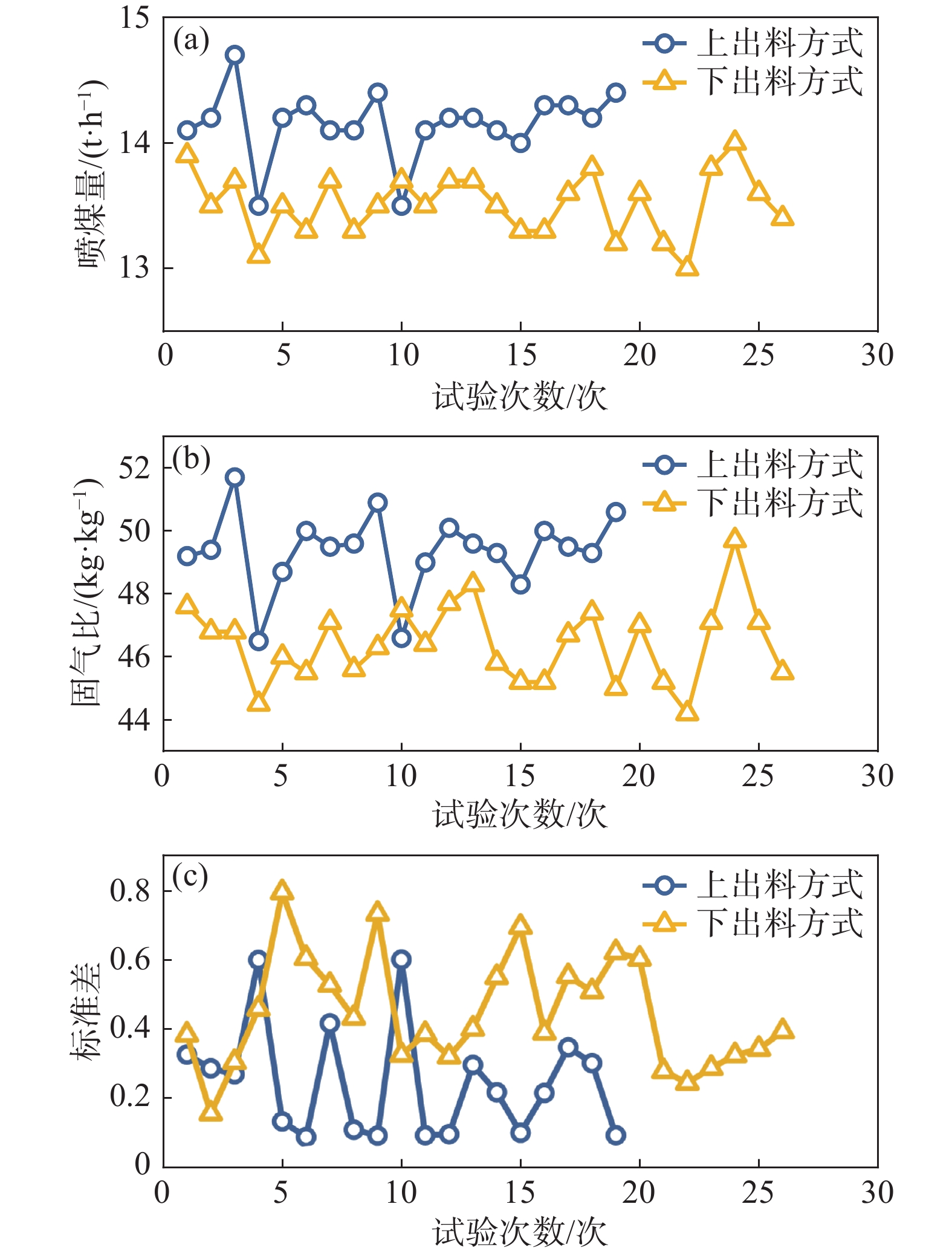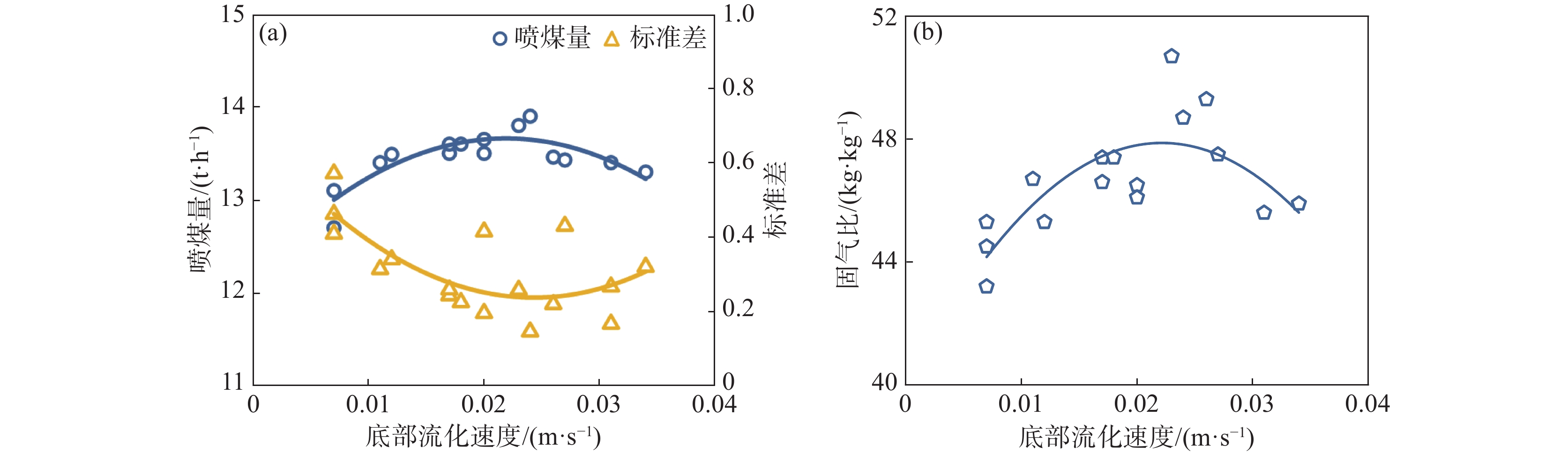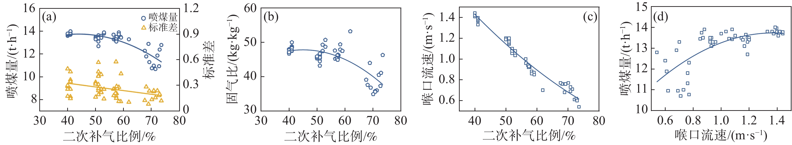 m3 blast furnace PCI system. Using this setup, the effects of various PCI processes and control parameters - including the secondary air injection ratio, the ratio of pressurized to replacement air, fluidization velocity, and discharge modes-on improving the injection rate, solid-gas ratio, and overall stability had been investigated. The experimental results revealed that, with a constant total gas flow in the injection pipeline, a decrease in the secondary air injection ratio led to a significant increase in both the injection rate and solid-gas ratio, as well as reduction in stability. When the secondary air injection ratio was maintained around 45%, the PCI rate and solid-gas ratio peaked, achieving the highest energy-saving potential. Furthermore, as the ratio of pressurized to replacement air increased, the PCI rate initially rose and then declined, reaching its maximum when the ratio was controlled between at 1.5~2. Similarly, the optimal bottom fluidization velocity was identified as 0.02~0.025 m/s, maximizing the injection rate, solid-gas ratio, and stability. Comparative analysis of two discharge modes (top discharge and bottom discharge) indicated that the top discharge mode offered superior stability due to the agreement of the gas flow direction with the discharge direction.